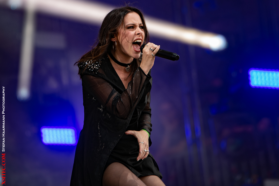 Nach diesem Gig kehre ich dem Wackinger-Dorf zunächst den Rücken. Der Weg zum Infield ist bereits gut bevölkert und mein nächster Stopp ist die HARDER-Stage, auf der BEYOND THE BLACK um Frontlady Jennifer Haben aufspielen. Leider geht just zu Beginn des Konzert ein Regenschauer herunter, was einen Härtetest für Mensch und Material darstellt. BEYOND THE BLACK lassen sich von den WACKEN-typischen Wetterkapriolen nicht weiter beeindrucken und spulen routiniert ihr Programm ab. Jennifer Haben, dem Mainstream wahrscheinlich besser bekannt als Teilnehmerin der VOX-Reihe „Sing Meinen Song-Das Tauschkonzert“ liefert eine starke Performance, während die Band einfach nur als unwiderstehlich zu bezeichnen ist. Ein würdiger Auftakt hier auf der Hauptbühne.