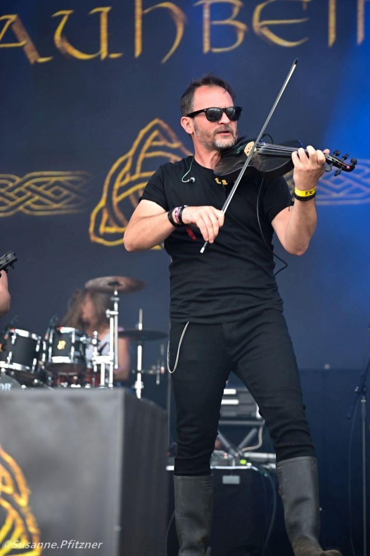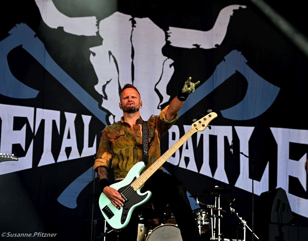 Genrewechsel: Auf der Wackinger Stage spielt RAUHBEIN – Folk Rock mit deutschen Texten und einer ordentlichen Portion Mittelalter-Feeling. Hier ist das Publikum anders: Wikingerhelme aus Plastik oder Metall, Kuhhörner als Trinkgefäße, aufblasbare Keulen. Der Duft von frisch gebackenem Fladenbrot und gegrillten Fleischspießen zieht durch die Luft. Der Wackinger-Bereich selbst wirkt wie ein mittelalterlicher Markt – Buden mit Met, Baumstriezeln und Lederwaren sorgen für authentisches Ambiente.