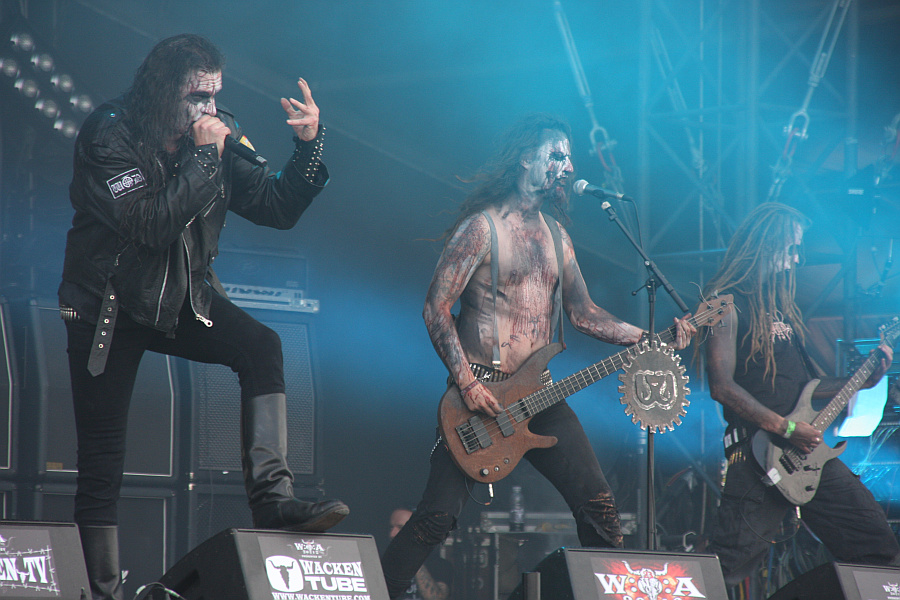 DIMMU BORGIR spielen nicht zum ersten Mal in Wacken, aber zum ersten Mal mit echtem Orchester und großem Chor, wodurch die Bühne natürlich brechend voll ist. Der symphonische Black Metal der Band eignet sich natürlich perfekt für eine solche Umsetzung, bedingt aber, dass der Sound auch wirklich gut abgemischt ist, damit das Ergebnis auch wirklich überzeugen kann. Falls jemand die Aufzeichnung des ZDF gesehen hat und der Meinung ist, dass eben dies nicht der Fall war, dem sei gesagt: vor der Bühne ist der Sound wirklich perfekt und macht den Auftritt zu einem wirklich unvergesslichen Erlebnis. Was wohl auch für die Orchestermusiker gelten dürfte, von denen sich ein paar sogar schwarzmetallisch angemalt haben, wie man auf den großen Videoleinwänden sehen kann. Auch ist der Kontrast zwischen den Bühnenoutfits von Shagrath, Galder und Silenoz und dem klassichen Orchesteroutfit interessant anzusehen. Gespannt durfte man dahingehend sein, welche älteren Songs mit Orchester dargeboten werden. Dass viele Songs vom aktuellen Album "Abrahadabra" gespielt werden würden, ist klar, denn auf diesem Album haben DIMMU BORGIR ja auch mit einem echten Orchester gearbeitet. Und so werden zunächst ausschließlich Songs des leider recht schwach geratenen Albums gespielt. Andererseits muss man aber auch festhalten, dass eben diese Songs in der Livesituation mit Orchester und Chor wesentlich spannender sind, als auf dem Album.