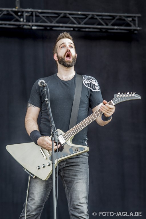 Nachdem die geilen Speed-Metal-Newcomer und belgischen Metal-Battle-Gewinner EVIL INVADERS kurzfristig disqualifiziert wurden und nicht auftreten dürfen, da sie mittlerweile einen Plattenvertrag unterschrieben haben, findet der musikalisch ernstzunehmende Startschuss des Festivals erst am späten Nachmittag auf der Black Stage statt (rein subjektiv versteht sich, schließlich soll es Leute geben, die das ganze Wochenende glückselig im Mittelalterdorf verbracht haben).