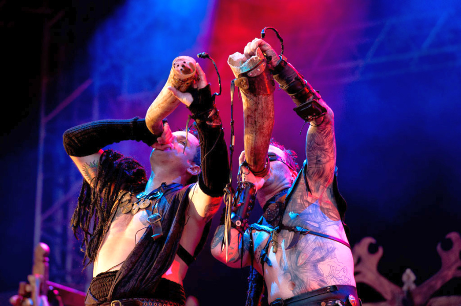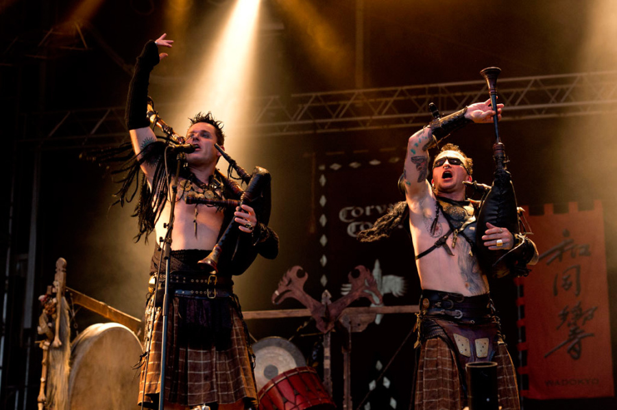 Die Überraschung ist groß, als man während des Sets von CORVUS CORAX MEETS WADOKYO auf der Party Stage mal kurz nach links blickt, weil es irgendwie leiser geworden ist und sieht, dass auf der Black Stage schon Feierabend ist – das kleine Drama um Lemmy bekommt man also erst später mit. Nun, der eine oder andere wird sich fragen, warum man überhaupt zu einer anderen Bühne geht, wenn doch MOTÖRHEAD spielen, aber auf der anderen Seite ist ja angesichts der Vorgeschichte schon abzusehen, dass dieser Auftritt wohl kaum zu einem Karrierehöhepunkt von Lemmy und seinen Jungs werden wird. Jedenfalls geht es auf der Party Stage deutlich agiler zu. Die Spielleute von CORVUS CORAX haben sich auch für diesen Festivalsommer mit der japanischen Trommelformation WADOKYO verstärkt und was beim letzen W:O:A bei SEPULTURA gut funktioniert hat, dürfte auch hier für spannenden Sound sorgen. Und in der Tat verfehlt die Kombination aus mittelalterlichen Klängen und den treibenden Trommeln seine Wirkung nicht, der verstärkte Fokus auf die rhythmische Komponente geht sofort ins Tanzbein und sorgt dementsprechend für beste Laune vor der Party Stage. Das Intro wird nur getrommelt, danach gibt es einen Querschnitt durch das Schaffen von CORVUS CORAX, bei dem viele Songs auch auf dem letzten Studioalbum "Sverker"