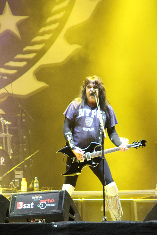 Der Festivaltag war lang und heiß, aber egal, für W.A.S.P. muss man noch mal alle Kräfte mobilisieren. Nachher ist Schwarzi Gesetzlos mal besonders gut drauf und man hat es verpasst. Von irgendwelchen Skandalen hinter der Bühne war immerhin bisher noch nichts zu hören und dass, obwohl er bestimmt nicht gerade erfreut ist, dass er mitten in der Nacht um 01:45 Uhr auf die Bühne muss. Schon mal typisch auf