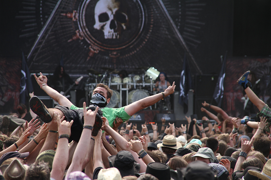 Zwar hat Alissa stimmlich auch so einiges auf dem Kasten und weder mit den neuen noch mit den älteren Stücken Probleme, aber ganz subjektiv zieht sie gegen Angela trotz aller Bemühungen den Kürzeren. Das mögen viele Leute sicherlich anders sehen und die Stimmung im Publikum ist nicht nur ziemlich gut, sondern selbst zu so früher Stunde sind schon jede Menge Crowdsurfer unterwegs. Dem Eröffnungsslot ist es jedoch wohl auch geschuldet, dass der Sound bestenfalls mittelmäßig ist. Recht basslasting und dumpf gehen die spielerischen Feinheiten der Gitarren weitestgehend unter, was für eine Band wie ARCH ENEMY und ihrem melodischen Death Metal eigentlich tödlich ist. Und so ist man nach dem Finale mit Hits vom Schlage "Dead Eyes See No Future", dem obligatorischen "We Will Rise" mit hüpfendem Publikum sowie "Nemesis" zwar nicht wirklich enttäuscht, aber auch nicht so richtig begeistert und hat zudem den Eindruck, dass die Band inzwischen vornehmlich ein junges Metaller-Publikum ansprechen möchte. (ASZ)
