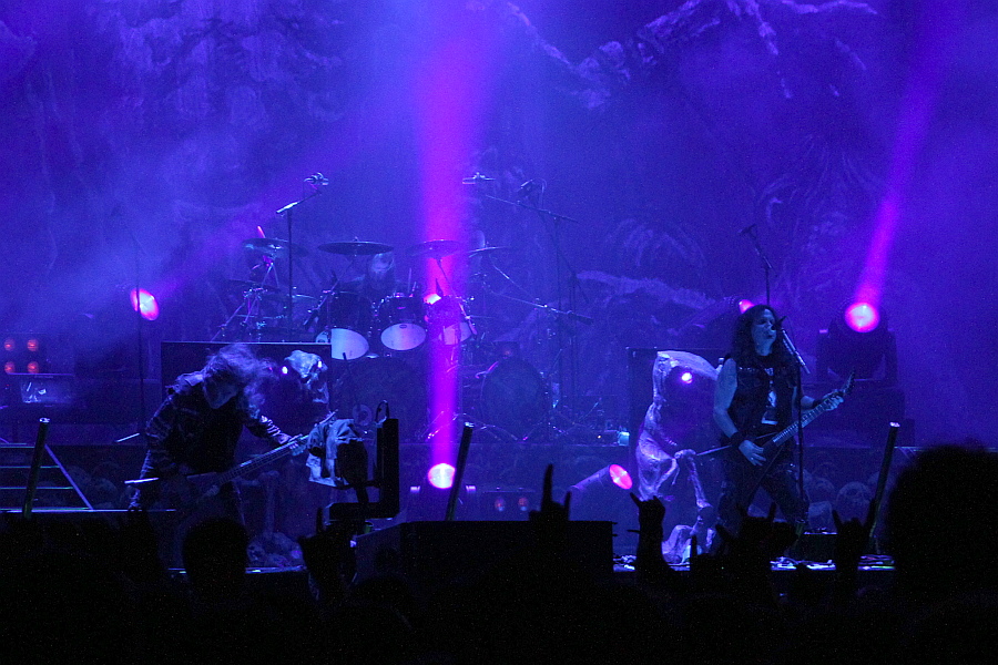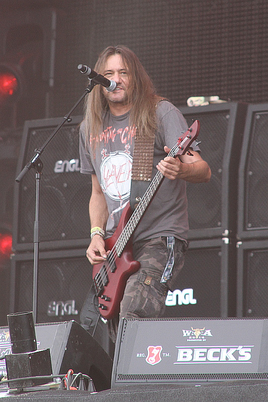 Das ist zu verschmerzen, zumal der Sound prima ist und die Thrasher live eh immer eine Bank sind. "Warcurse" geht als kleine Überraschung durch, das mit dem "Coma Of Souls"-Riff eingeleitete "Endless Pain" sorgt trotz der Müdigkeit, die die meisten Besucher in den Knochen haben dürften, für Wall Of Death und Circlepit. Dem Evergreen "Pleasure To Kill" folgen die Chaoshorden mit Flitterregen und Feuersäulen, bei "Phobia" wird ordentlich Dampf in die Luft geblasen. "Enemy Of God" ist live immer noch geiler, als auf Platte, die Autonomen haben dann zu "Civilzation Collapse" noch mal ihren Auftritt. Nach "Violent Revolution" darf Gitarrist Sami noch mal hübsch die Akustische zupfen, mit "United In Hate" und dem obligatorischen "Flag Of Hate"/"Tormentor"-Medley geht es dann mitsamt Circlepit dem Ende eines wie üblich souveränen, aber auch gewohnten Auftritts zu.
