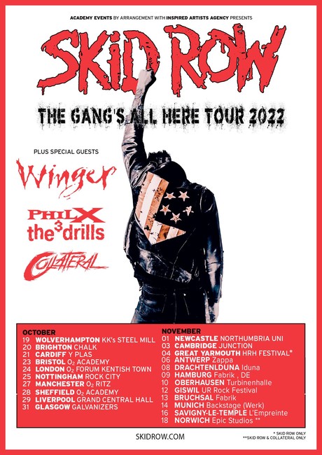 SKID ROW haben sich für das Jahr 2022 eine Menge vorgenommen. Neben einer neuen Platte, die im Oktober erscheinen soll, wird die Band in diesem Jahr auf Welttournee gehen. Zudem präsentieren die Jungs aus New Jersey mit ERIK GRÖNWALL den neuen Shouter am Mikrofon, um den es nach seinen Ausstieg bei H.E.A.T im Oktober 2021 zunächst etwas still geworden war.