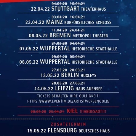 Update: Die Konzerte in Oberhausen und Köln mussten leider erneut verschoben werden.