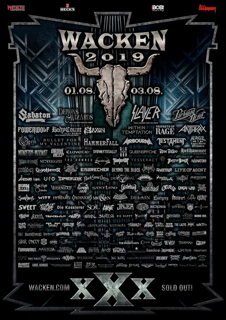 Das Wacken Festival 2019 findet in diesem Jahr vom 01.08. bis 03.08. statt und zum dreißigjährigen Jubiläum lassen es die Veranstalter einmal mehr so richtig krachen. Noch während des letztjährigen W:O:A wurden als Headliner SABATON angekündigt. Die Schweden feiern dieses Jahr ihr 20-jähriges Bühnenjubiläum. Ebenfalls mit dabei sind die Schweizer Urgesteine von KROKUS oder DEMONS & WIZARDS mit ihrer einzigen Festivalshow in Deutschland. Slayer sind auf ihrer Abschiedstour mit von der Partie, genauso wie D-A-D und PARKWAY DRIVE. RAGE zeigen anlässlich ihres 20-jährigen Jubiläums exklusiv auf dem W:O:A eine einmalige Show, natürlich unterstützt vom LINGUA MORTIS ORCHESTRA. Als weiteres Highlight dürfen sich die Metalheads auf den ersten Auftritt von BODY COUNT FEAT. ICE-T auf dem heiligen Acker freuen.