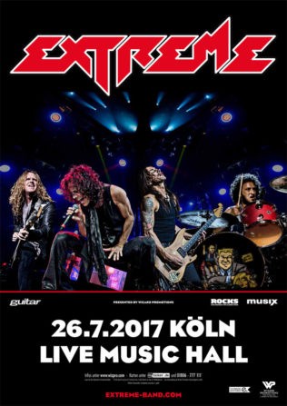 Erstmals seit ihrer umjubelten „Pornograffitti“-Jubiläums-Tour im Sommer 2014 werden Extreme wieder nach Deutschland kommen. Die mit mehrfachen Platin-Awards ausgezeichnete Rock-Band aus Boston hat eine exklusive Headline-Show am 26. Juli 2017 in Köln in der Live Music Hall bestätigt, um ihre im November erschienene Live-Dokumentation „Pornograffitti Live 25: Metal Meltdown At The Hard Rock Casino Las Vegas” (Loud And Proud/Warner) vorzustellen. Zusätzlich eröffnen Extreme am 23. Juli für Scorpions auf dem Münsterplatz in Ulm.